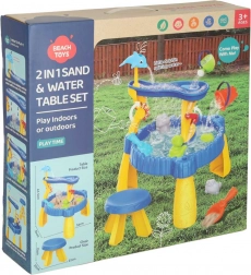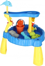 Igraći stol 2u1 s fontanom idealan je za zabavu kod kuće i na plaži. Zahvaljujući jednostavnoj montaži, odmah je spreman za upotrebu. Igračka podupire senzornu i motoričku integraciju djece.