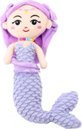 Morska sirena ima elegantno izvezeno lice i sitne zlatne i ružičaste akcente na čelu s nasmiješenim očima. Svijetloljubičasta kosa ukrašena je trakicom s mašnama sa strane, a na vratu je šareni ogrlica od perlica. Cijeli dizajn djeluje nježno i bajkovito.