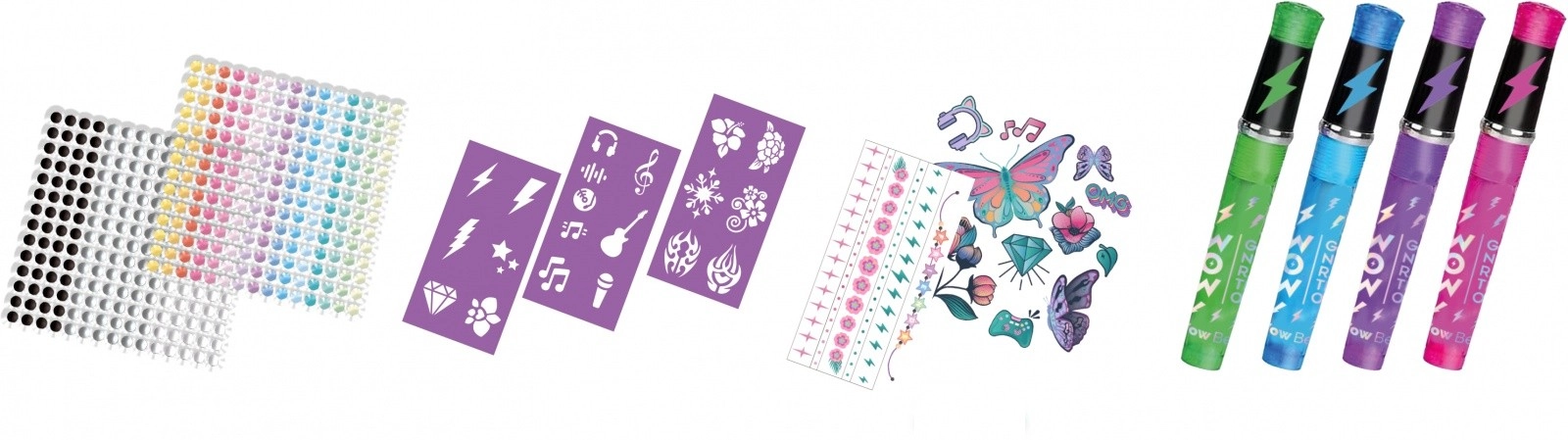 Set za izradu sjajnih tetovaža nudi mnoštvo mogućnosti za ukrašavanje kože jedinstvenim i blistavim uzorcima: