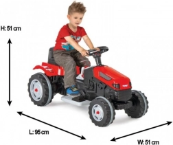 Traktor je opremljen ručkom za vožnju naprijed i natrag, što olakšava upravljanje. Nadalje, ima zvono/klakson za zvučnu signalizaciju i automatsku kočnicu koja se aktivira kada dijete skine nogu s gasa, čime se osigurava sigurnost korisnika.