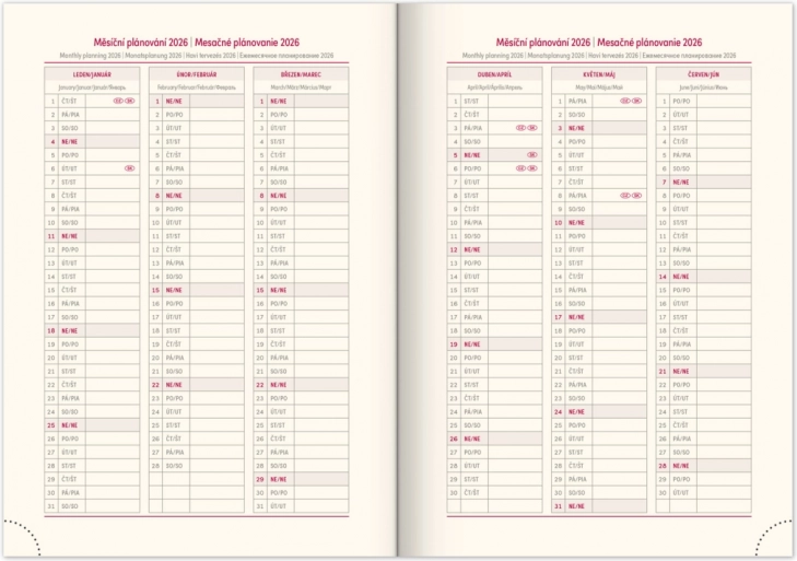 - Godišnji i mjesečni planirajući kalendari za 2026. i 2027. godinu.