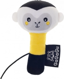 Slatka plišasta zvečka u obliku majmunčića brenda GAGAGU potiče slušno opažanje, vizualnu stimulaciju i finu motoriku. Meka je, lagana i savršeno pristaje u male dječje ručice. Kontrastne boje i blag, ugodan zvuk čine ovu igračku idealnim pratiteljem kod kuće, u šetnji i na putovanjima. Prikladno za djecu od 0 mjeseci.