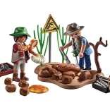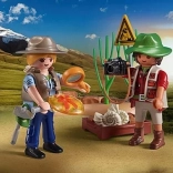Otkrijte drevne tajne s uzbudljivim PLAYMOBIL setom iskopavanja! Sakrijte fosile poput amonita, trilobita i dinosaurovih jaja u stijenama i ponovno ih otkrijte uz pomoć realističnih alata. Pomoću kistova, čekića i povećala pažljivo analizirajte svoje nalaze i sigurno ih pohranite u drvenu kutiju. Uz priloženu kameru paleontolozi mogu dokumentirati svaki uzbudljivi nalaz. Detaljno izrađena podloga s grmljem i granama poziva na beskrajno maštovito istraživanje. S brižno osmišljenim PLAYMOBIL dizajnom svako iskapanje postaje avantura u prošlost!