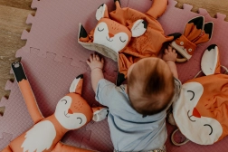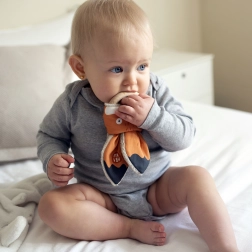Igračka Grickalica Lisica od Ababu kombinira originalan dizajn s sigurnošću za najmanje. Materijali presvučeni autorskim tiskom su od 100% pamuka, s certifikatom za djecu do 3 godine. Prsten je izrađen od prirodnog bukovog drveta, ručno izrađenog u Vysočini.