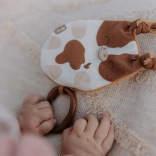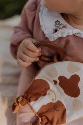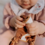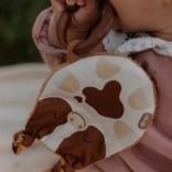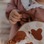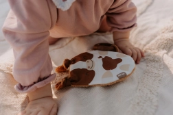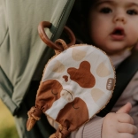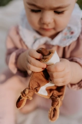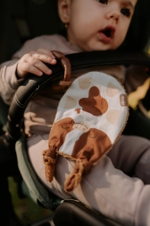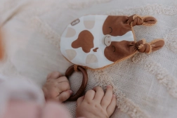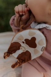 Izrađena od kvalitetnih materijala, igračka Telad nudi mnogo zanimljivih elemenata koji razvijaju osjetila vaše djece. Lice je napravljeno od tiskane tkanine od 100% pamuka, certificirano za djecu do 3 godine. Stražnja strana od bambusovog frotira pruža mekanu i ugodnu površinu.