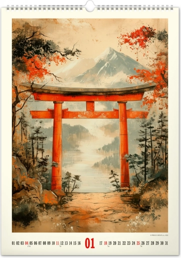 Otkrijte ljepotu japanske kulture s ovim prekrasnim zidnim kalendarom koji nudi: