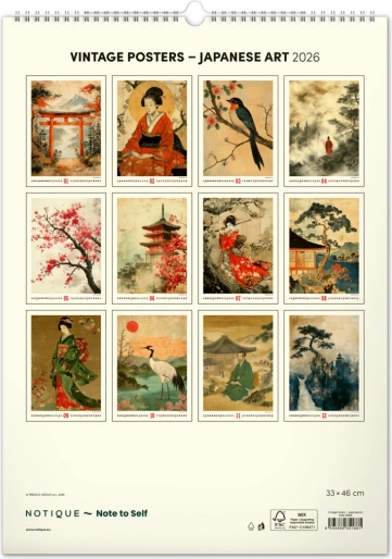 Zidni kalendar s pomno odabranim klasičnim plakatima iz japanske kulture. Uživajte u razrađenim detaljima i živim bojama u velikom formatu.