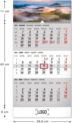Tromjesečni zidni kalendar s motivom krajine u elegantnoj sivoj izvedbi donosi jasan pregled nad proteklim, aktualnim i nadolazećim mjesecom. Zahvaljujući pomičnom klizaču lako istaknete trenutačni datum, a s godišnjim pregledom imate važne termine pod kontrolom.