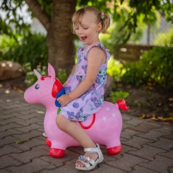 Ružičasti skakajući jednorog Woopie savršen je pratitelj za aktivnu igru kod kuće i na otvorenom. Zahvaljujući udobnim rukohvatima u obliku ušiju i širokim, protukliznim nožicama, vožnja je stabilna i sigurna. Šarena griva, bijeli rog i motiv zvjezdica potiču dječju maštu i svaku igru pretvaraju u zabavnu avanturu.
