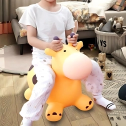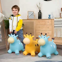 Žirafa je izrađena od sigurnih i izdržljivih materijala, dizajnirana da pruža stabilnost i udobnost, što potiče na aktivno kretanje i omogućuje sate radosnog skakanja, kako u domu tako i na otvorenom.