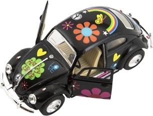 Preselite se u zlatno doba cesta s detaljno izrađenim modelom KINSMART VOLKSWAGEN Beetle. Ovaj metalni model mjerene duljine 13 cm impresionira kvalitetnom izradom, šarenim cvjetnim motivima i realističnim detaljima koji će razveseliti djecu i odrasle kolekcionare.