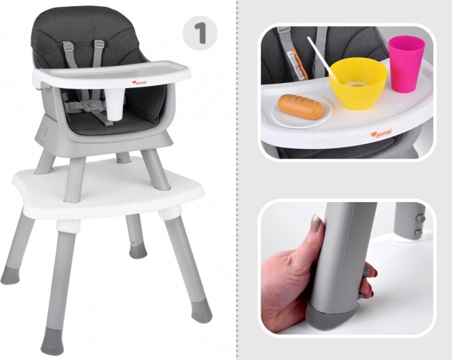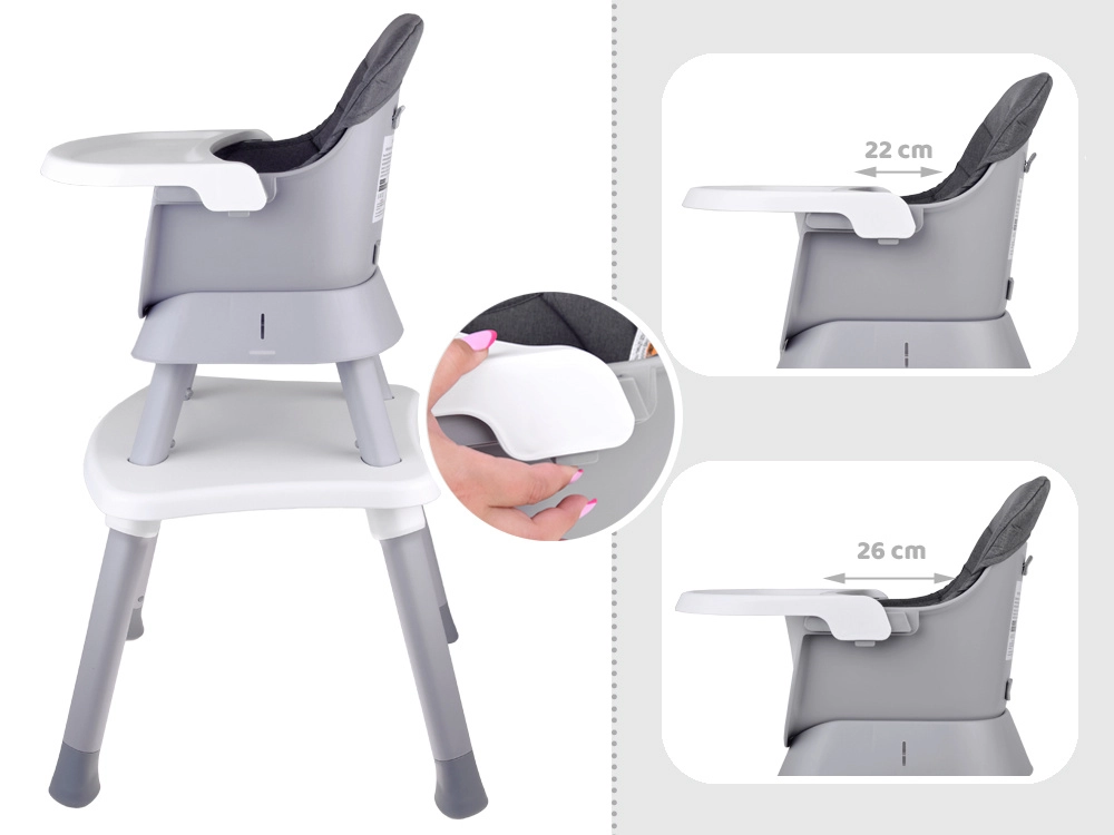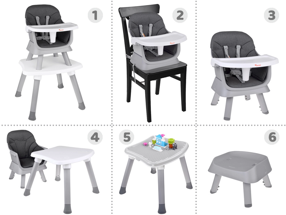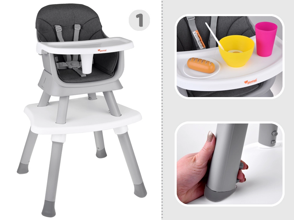 Multifunkcionalna dječja hranilica 6u1 idealno je rješenje za roditelje koji traže praktičnu i stilsku opremu koja se prilagođava promjenjivim potrebama djeteta. Od hranilice za samostalno hranjenje preko dječje stolice pa sve do kompletne stolne garniture za igru i učenje.