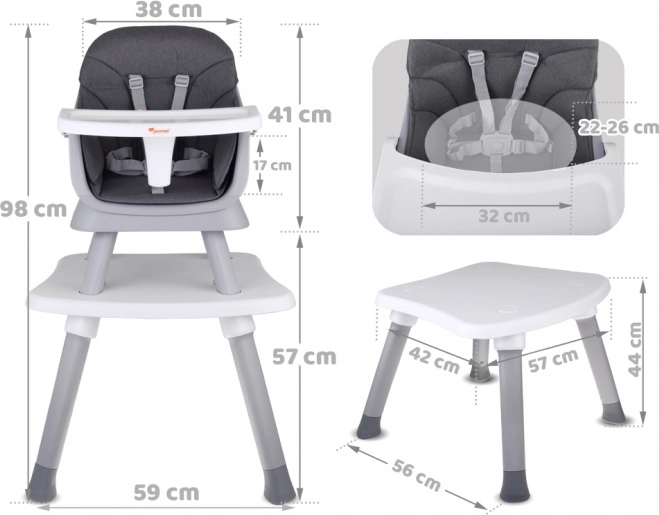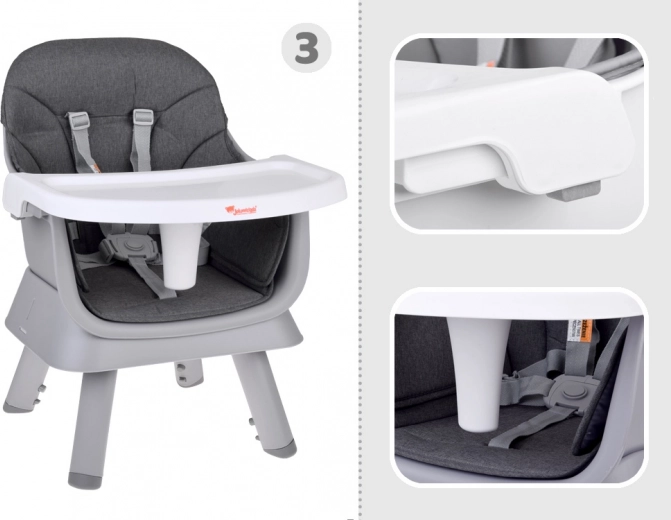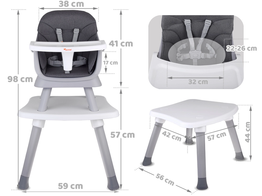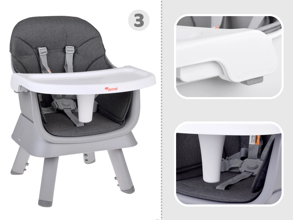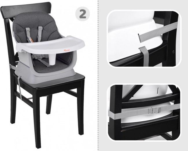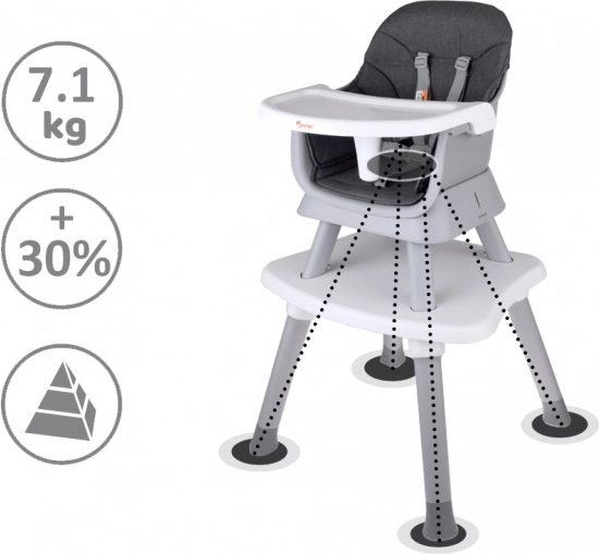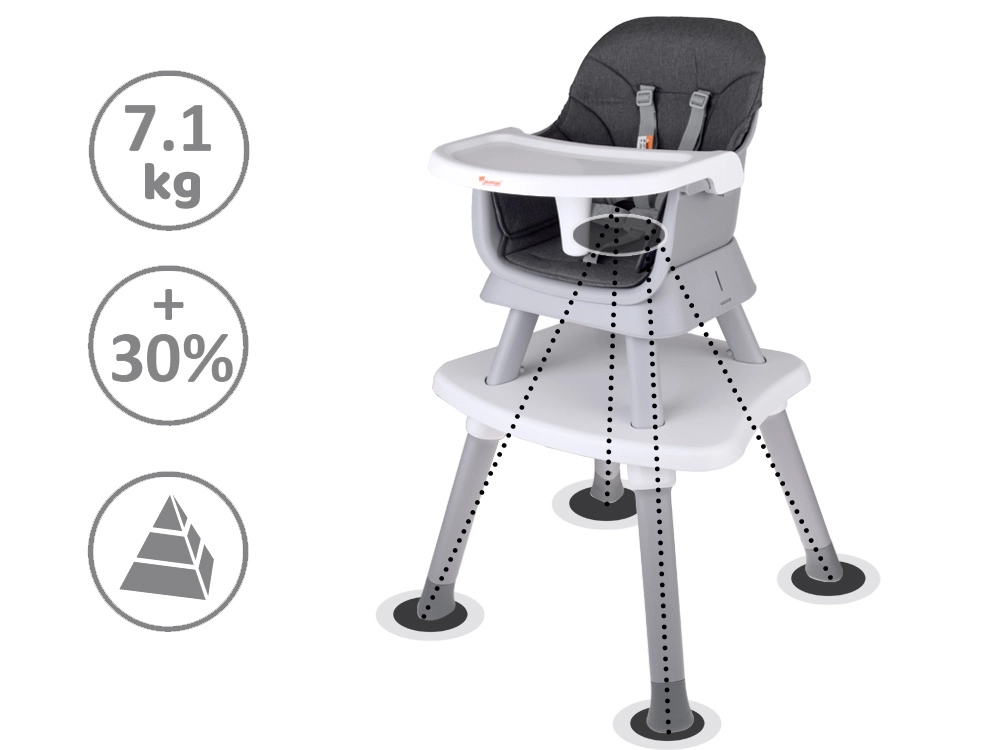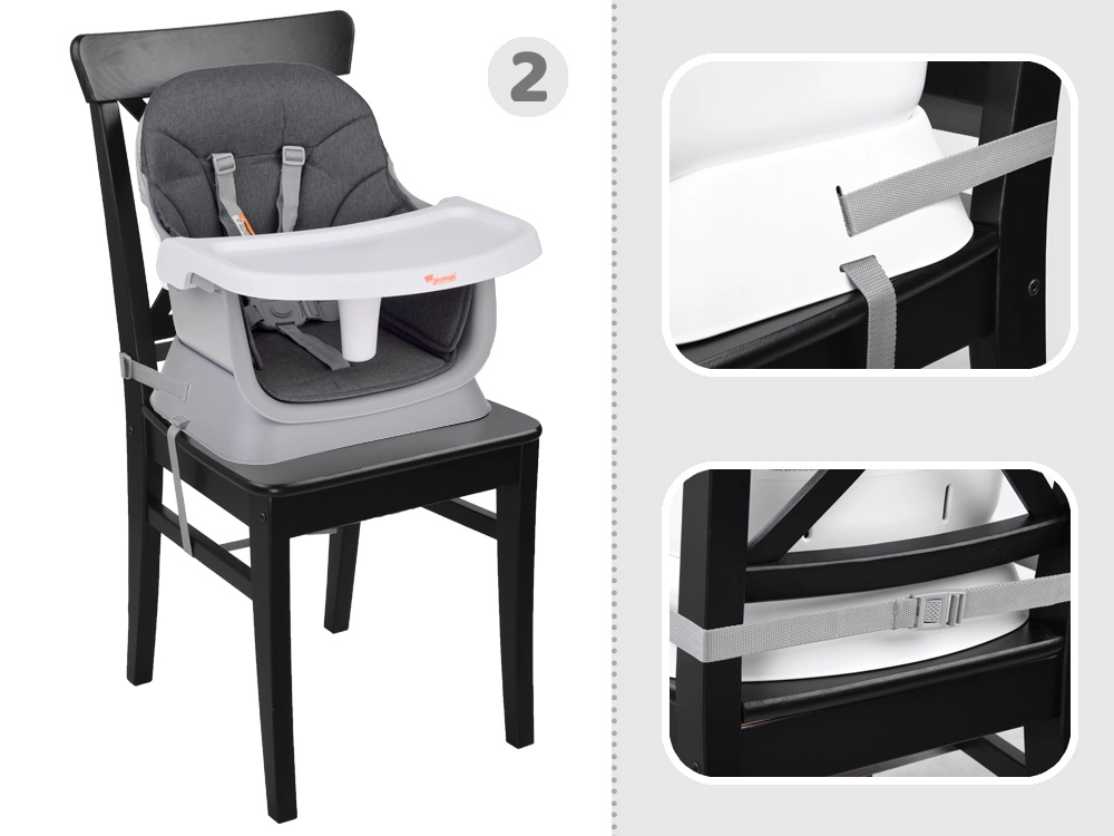 - Nastavak za blagovaonsku stolicu – zahvaljujući učvršćujućim remenima i protukliznim nogama sigurno se pričvršćuje na bilo koju stolicu.