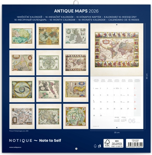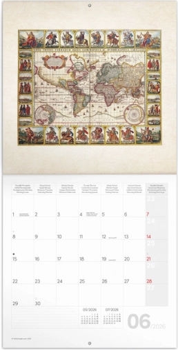 Zapisnički kalendar Stare karte 2026 nudi dvanaest ilustracija starih karata i idealan je pratilac za planiranje. Ovaj praktični kalendar izrađen je s naglaskom na ekologiju, dio je kolekcije Plastic Free.