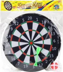 Set sadrži tamnu metu promjera 28 cm, jednu strelicu i jednu lopticu, obje s čičak završetkom. Meta ima čitljive brojeve i šarene zone koje ne samo da olakšavaju učenje i poboljšavaju reflekse, već su također korisne pri igranju unutar i vani.