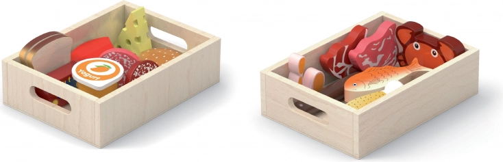 Drveni set namirnica renomiranog brenda VIGA izvrstan je dodatak svakodnevnoj igri vašeg djeteta. Idealan za igru trgovine ili kućanstva, omogućuje djeci da postanu pravi mali kuhari. Set je dizajniran tako da je siguran za male ruke zahvaljujući izostanku oštrih rubova.