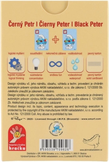 Popularna kartaška igra Crni Petar sa ŠTRUMPFOVIMA odličan je izbor za obiteljske trenutke i brze partije na putovanjima. Vesele ilustracije poznatih likova iz Štrumpf sela mame na igru i potiču dječju maštu.