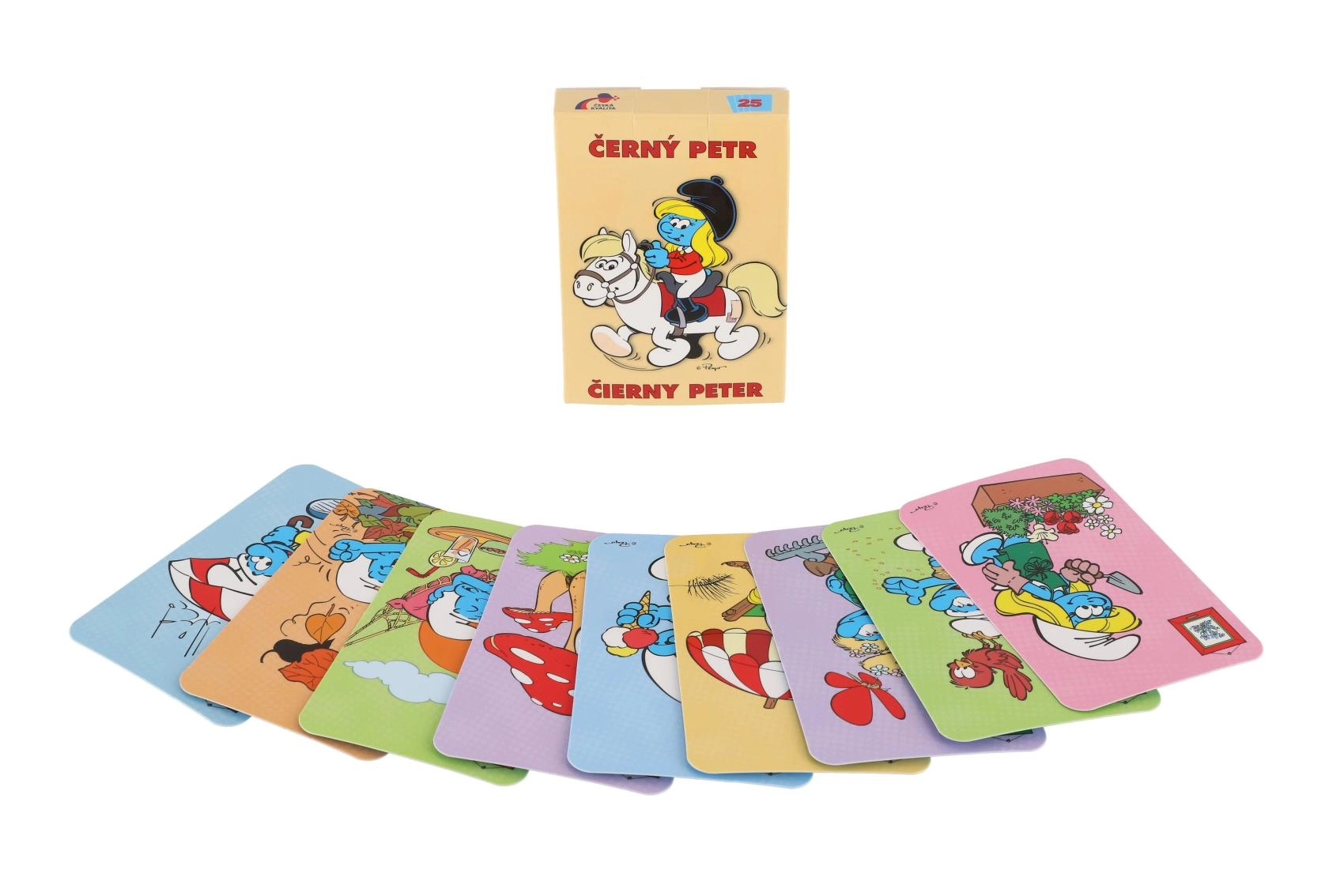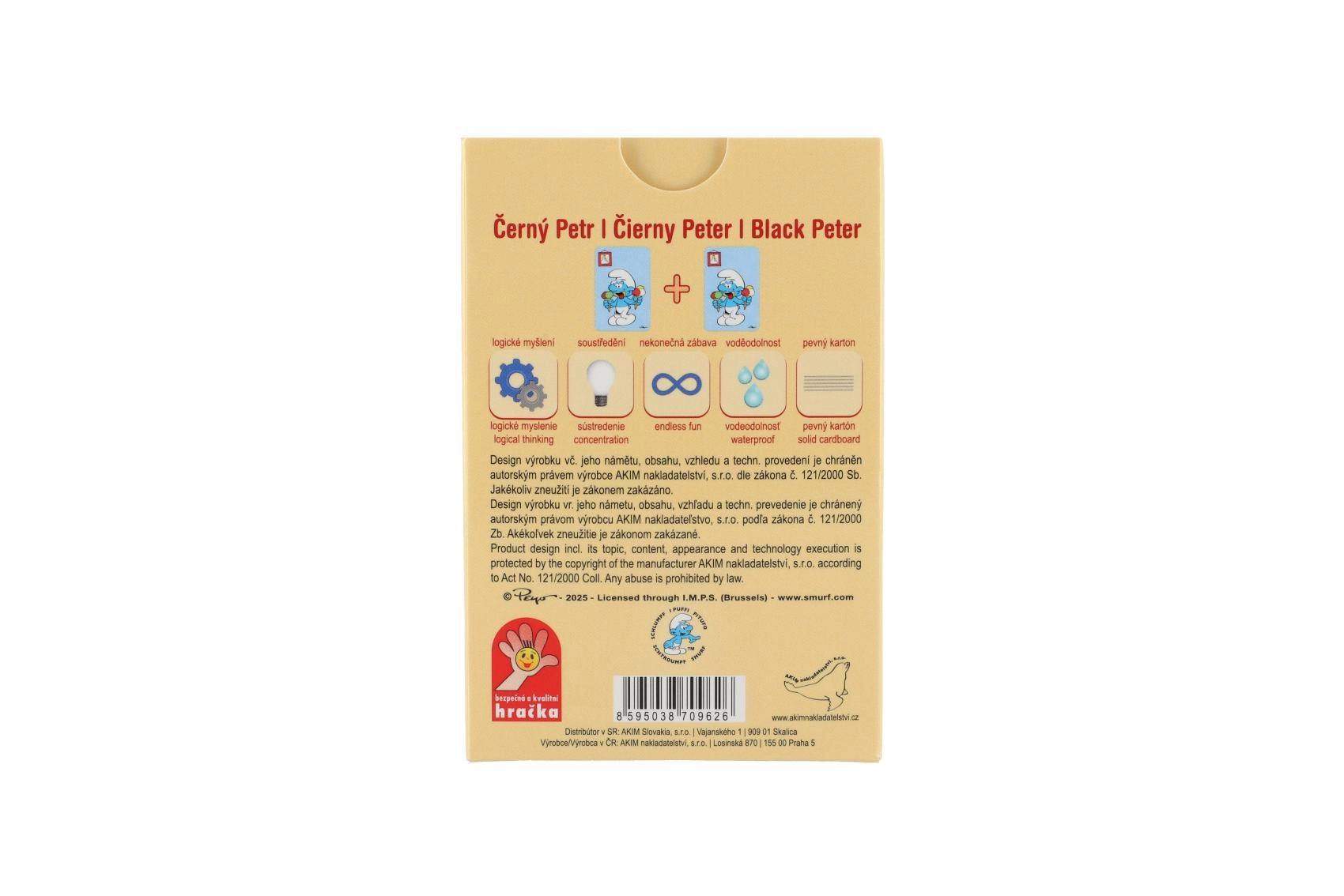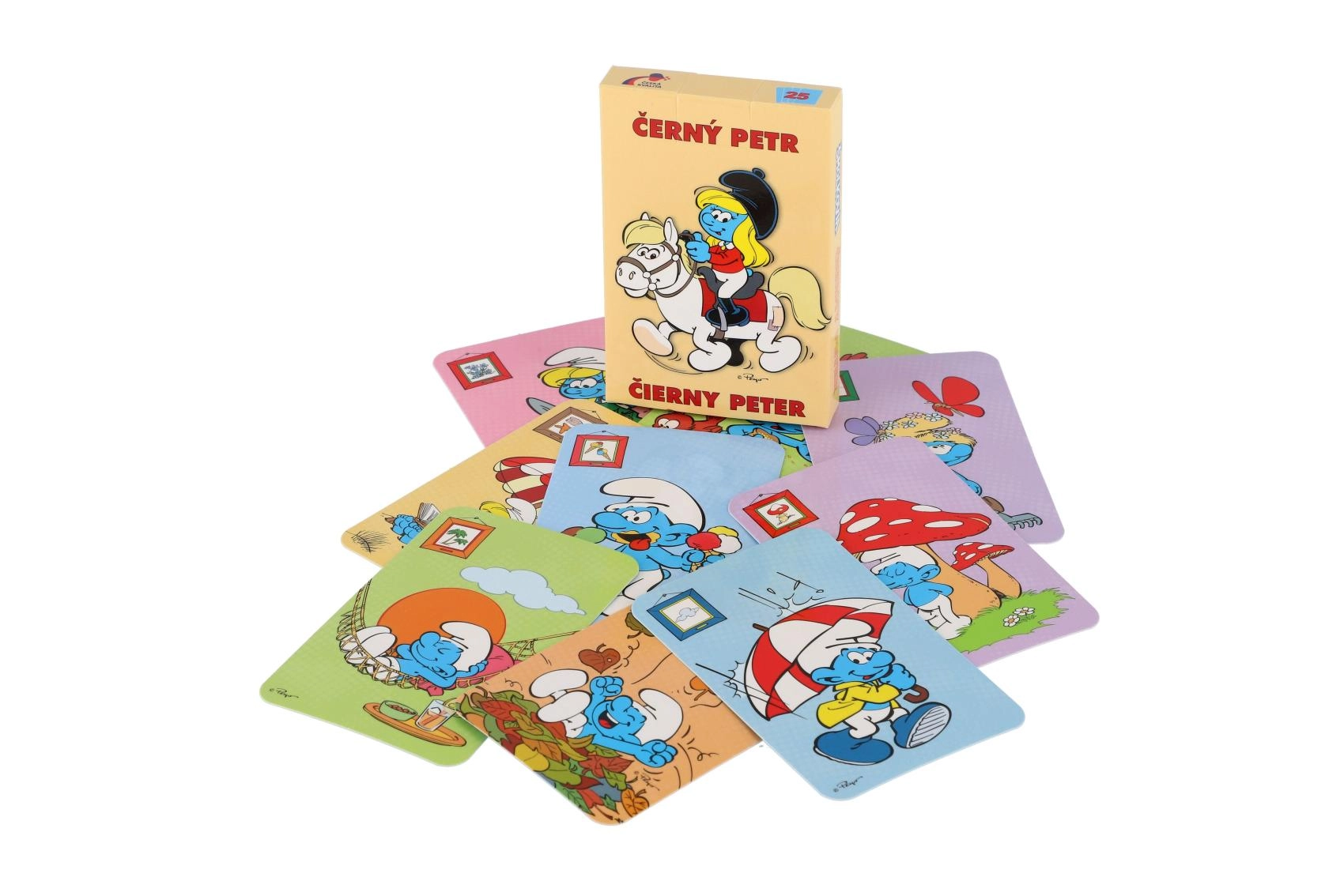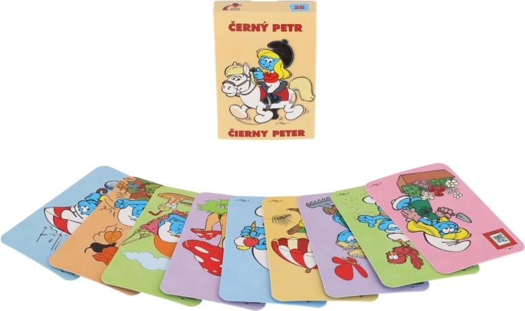 Uživajte u klasičnoj igri Crni Petar u simpatičnom štrumpfastičnom stilu! Karte s šarenim ilustracijama ŠTRUMPFOVA oduševit će djecu i odrasle te osigurati puno zabave kod kuće i na putu. Kompaktno pakiranje lako stane u džep, ruksak ili kovčeg.