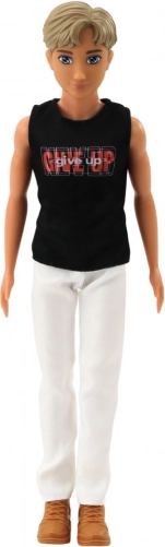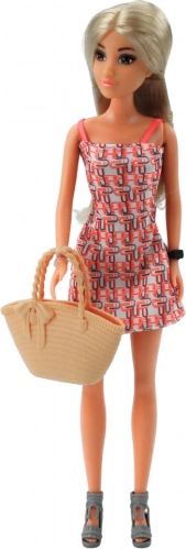 Djevojka nosi crvenu haljinu s geometrijskim uzorkom i sive sandale na punu petu. Njezinu dugu plavu kosu moguće je češljati i uređivati. Stilizaciju upotpunjuju slamnata torbica i bijeli šešir sa širokim obodom – idealno za sunčane dane. Dječak je odjeven u crnu majicu bez rukava s printom, bijele hlače i smeđe cipele, što stvara moderan ljetni outfit.