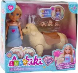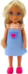 Set Mini Lutkica s Psom i Štencima sadrži lutkicu visoku 13 cm, odjevenu u šarenu haljinicu na naramenice i ružičaste cipelice. Nježno lice i duga plava kosa daju lutkici poseban šarm.