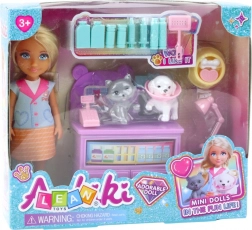 Upoznajte svijet veterinarske skrbi s mini lutkicom visokom svega 13 cm. Odjevena u stylish outfit koji uključuje sportske tenisice i majicu s natpisom 'Pet', djeca će je zavoljeti na prvi pogled. Realistični dodaci uključuju i psa te mačku kojima je potrebna pomoć, kao i liječnički ormarić s mnoštvom dodataka.
