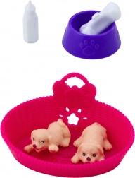 Djeca se mogu veseliti dvama malim štencima koje mogu hraniti, njegovati i stavljati u ružički krevetić s motivom šape. Zahvaljujući bočici za hranjenje i ljubičastoj zdjelici s kosti, djeca mogu igrati realistične prizore njege, čime razvijaju empatiju, kreativnost i manualne vještine.