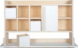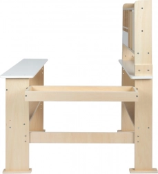 Drveni prodajni štand izvrstan je dodatak svijetu igre vaše djece, koji potiče njihovu kreativnost i maštu. Zahvaljujući robusnoj konstrukciji i kvalitetnim materijalima, ne samo da izgleda prekrasno, već je i siguran te izdržljiv pri duljoj igri. Štand je osmišljen tako da razvija komunikacijske i socijalne vještine kod djece te ih uči osnovnim pravilima društvene interakcije.