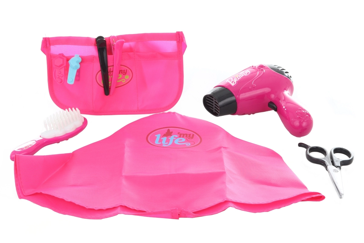 Zahvaljujući preglednoj pregači s džepovima, djeca imaju sve alate pri ruci, a pelerina za šišanje pruža dodatnu autentičnost igri. Set je osmišljen za sigurno dječje korištenje te se zbog kompaktnih dimenzija lako posprema i prenosi.
