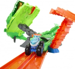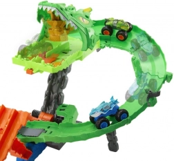 - Set staze sa zmajevom preprekom i skretnicom, dvostruki izbacivač, 2 monster trucka (Great Bite, Rageasaur)