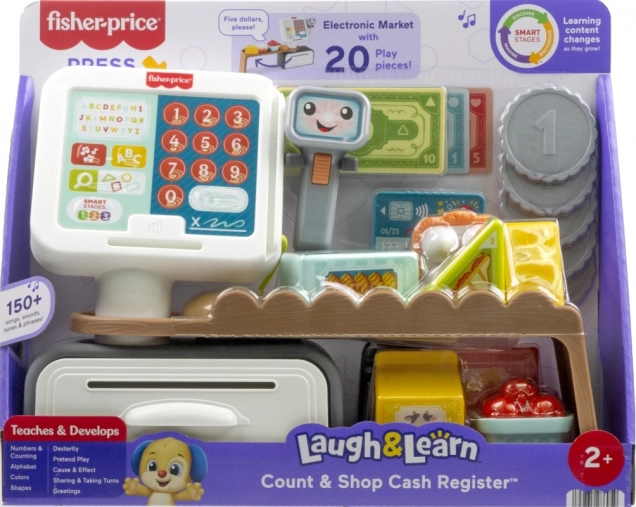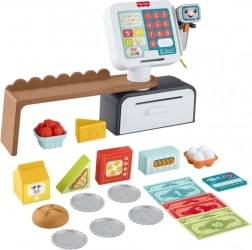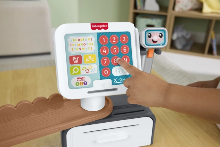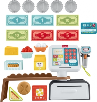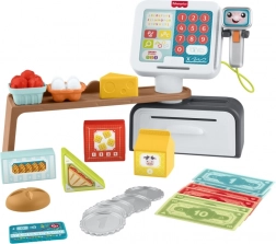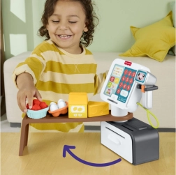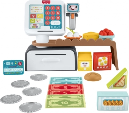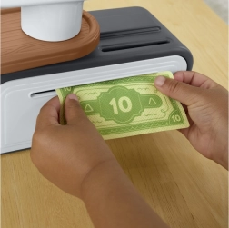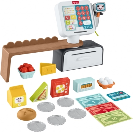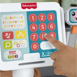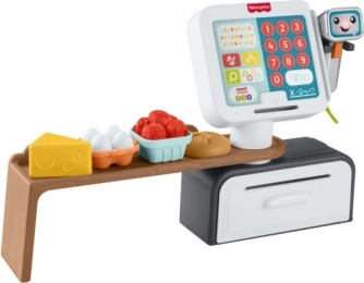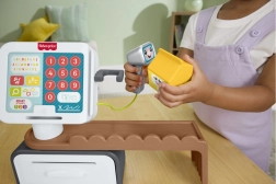 Govoreća blagajna Fisher‑Price pretvara svaku igru trgovine u zabavno učenje. Djeca mogu skenirati namirnice, pritiskati velika šarena dugmad, umetati novčanice i kovanice u ladicu te plaćati karticom. Bogata zvučna povratna informacija s više od 150 zvukova i fraza potiče prirodno učenje i razvoj rječnika.