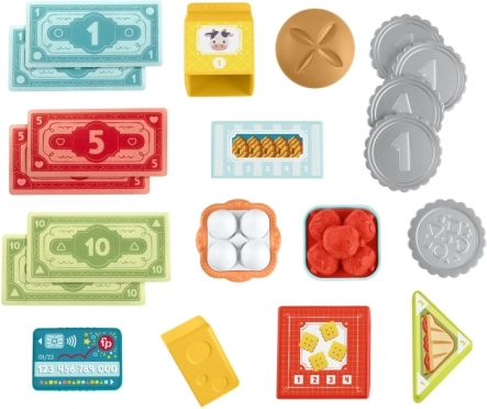 U kompletu su novčanice, kovanice, kartica za plaćanje i plastične namirnice – sve za potpune scenarije kupovine, skeniranja i plaćanja.