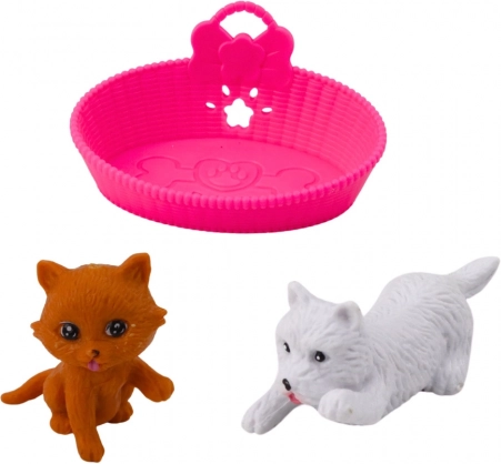 Mini lutkica sa psom i mačkom s priborom idealna je za male skrbnice. Lutkica visine 12 cm, odjevena u ružičastu haljinu ukrašenu srčekima, dolazi s plastičnim figuricama životinja. Set sadrži: