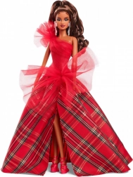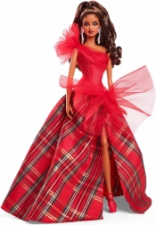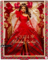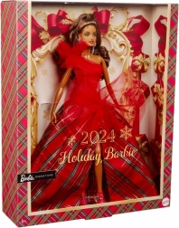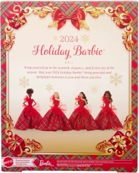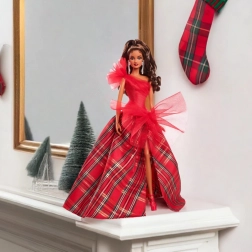 Blagdanska Barbie 2024 ima impresivnu svjetlucavu crvenu korzet haljinu s jednim ramenom, koja je lijepo usklađena s voluminoznom balskom suknjom u klasičnom kariranom uzorku. Veliki tilni akcenti daju klasičnom stilu moderan karakter, dok izražene naušnice naglašavaju ukupnu eleganciju. Lutka je pakirana u kutiju idealnu za izlaganje, što ju čini odličnim poklonom za kolekcionare ili kao jedinstveni element blagdanskih dekoracija.