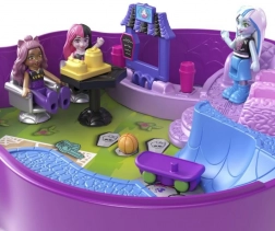 Ovaj prijenosni kompakt u obliku ikonične MONSTER HIGH lubanje skriva detaljno obrađene scene – učionice, kliznu biblioteku s tajnom, kutke za odmor i skate rampu za sjajne trikove. Unutra možete spremiti i mini figurice te sitne dodatke, pa je igra uvijek spremna kod kuće i na putu.