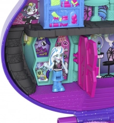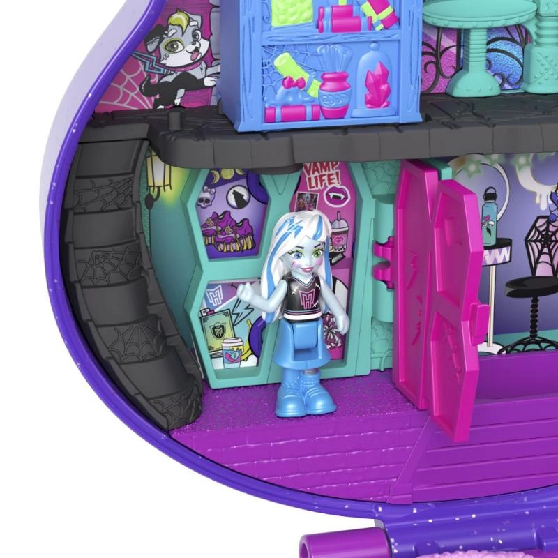 Sastavni dio su 3 mikro lutkice (Draculaura, Clawdeen Wolf, Frankie Stein) i tematski pribor – namještaj, školski rekviziti te sportski kutak s košem za košarku. Kompakt nudi mnogo interaktivnih elemenata koji potiču kreativno pripovijedanje i finu motoriku.