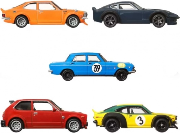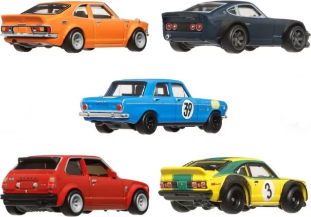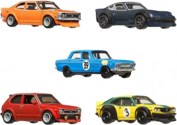 Ovaj set sadrži pet metalnih vozila Hot Wheels inspiriranih ikoničnim japanskim automobilima. Idealan je za kolekcionare koji traže premium replike u mjerilu 1:64 s realističnim detaljima.