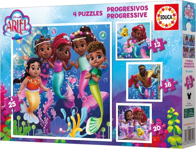 Otkrijte čaroliju podmorja s slagalicom Disney Ariel. Ovaj set sadrži četiri progresivne slagalice s različitim stupnjevima težine i različito velikim dijelovima, idealno za mlađu i stariju djecu.