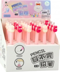 Olovka je duga 15 cm i izrađena je od lagane, ali čvrste plastike koja osigurava udobno korištenje. Automatski mehanizam omogućuje izbacivanje grafita bez potrebe za šiljenjem, što je vrlo praktično u školi, kod kuće ili tijekom kreativnih aktivnosti. Slatka dekoracija u obliku zečića privlači pažnju i može biti atraktivan dodatak pernici ili poklon.