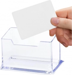 Elegantni i funkcionalni držač posjetnica idealno je rješenje za urede, recepcije, korisničke pulteve te sajmove i konferencije. Izrađen od kvalitetne prozirne plastike, djeluje moderno i profesionalno.
