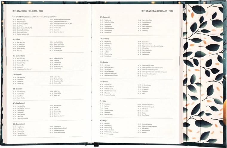 Tjedni dnevnik na engleskom jeziku s međunarodnim blagdanima i praktičnim magnetnim zatvaranjem idealan je za one koji žele imati svoje planove jasno pod kontrolom.