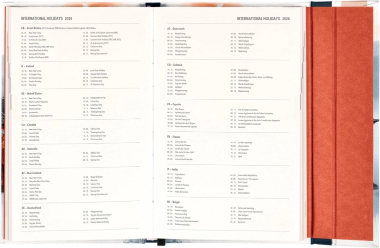 Tjedni dnevnik s međunarodnim blagdanima i magnetnim zatvaranjem idealan je za sve koji žele imati pregledne planove zahvaljujući dovoljno prostora za bilješke.
