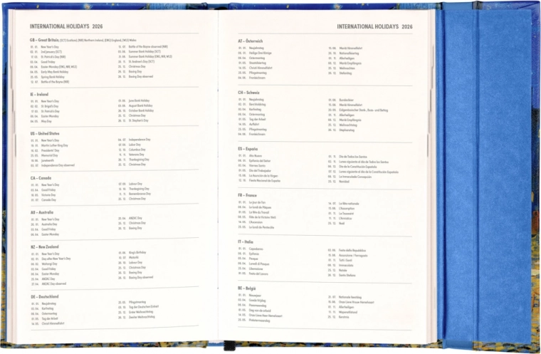 Planer je dostupan u dimenzijama 13 x 21 cm, što je idealna veličina za torbu ili ruksak. Uključuje i međunarodne blagdane, što je korisno za korisnike koji često putuju ili imaju međunarodne klijente.