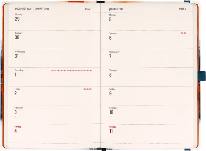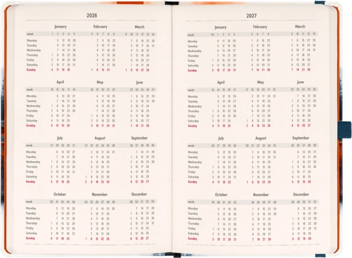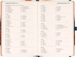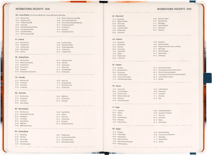 - Dio planera: Dvotjedni horizontalni kalendarij s međunarodnim blagdanima.