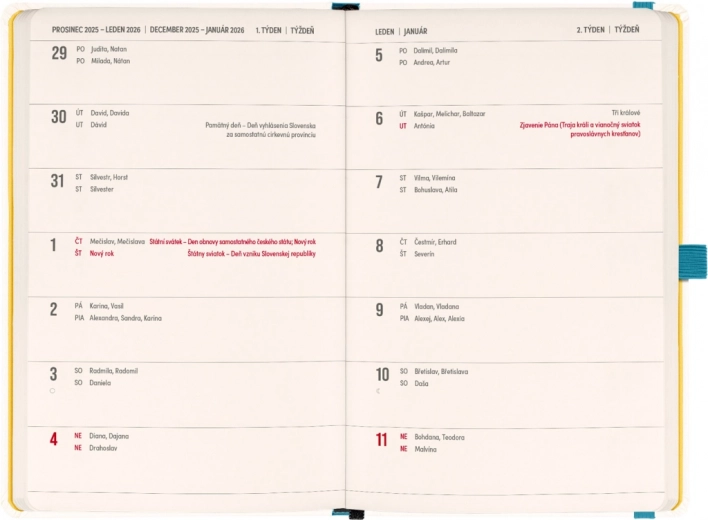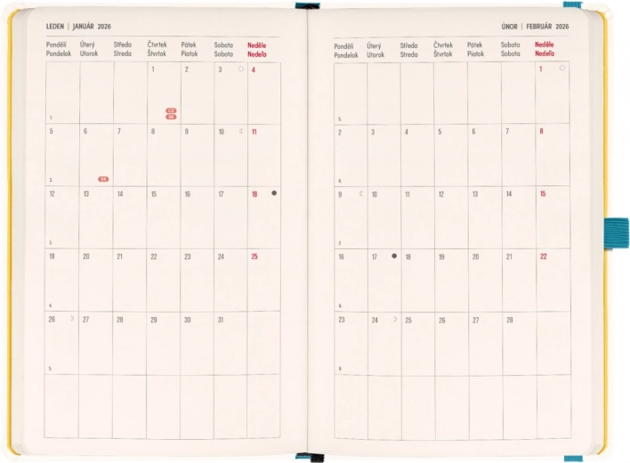 PLANBOOK Herbarij 2026 idealno je rješenje za sve koji žele imati planiranje i bilješke na jednom mjestu. Prva polovica sadrži dvotjedno horizontalno kalendarij s češkim i slovačkim blagdanima, što olakšava planiranje. Druga polovica nudi dovoljno liniranih stranica za bilješke, što je savršeno za kreativno razmišljanje i planiranje projekata.