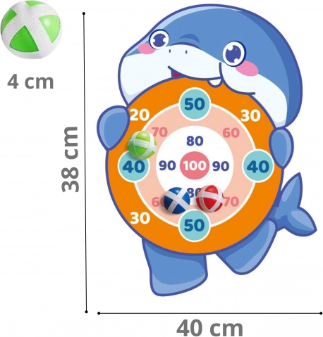Uronite u svijet uzbudljive zabave s metom u obliku slatkog morskog psa brenda Woopie! Ova šarena i vesela meta, idealna za vješanje na zid, jamči sate aktivne zabave, a istovremeno razvija preciznost i koordinaciju vašeg djeteta. U pakiranju se nalaze meke loptice koje se zahvaljujući čičak-trakama lako pričvršćuju na metu, što olakšava brojanje bodova.