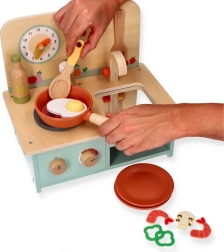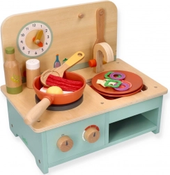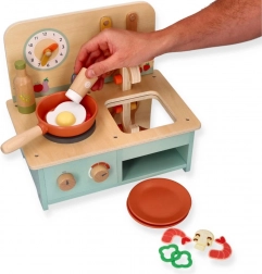 Ova kompaktna drvena kuhinjica nudi djeci priliku za igru uloga i razvoj vještina. Posebno je dizajnirana za djecu od 3 godine naviše, što je čini idealnom za predškolce. Kuhinjica je opremljena realističnim detaljima poput okretnih gumba i sata.