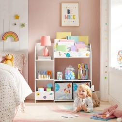 Tri knjižna pretinca čine idealnu, otvorenu knjižnicu koja potaknuta djecu da svakodnevno posežu za svojim omiljenim pričama. Dizajn jasno prikazuje naslovnice knjiga, što budi znatiželju i olakšava pronalazak određene knjige. Ova praktična značajka podržava čitalačke navike i rutinu od rane dobi.