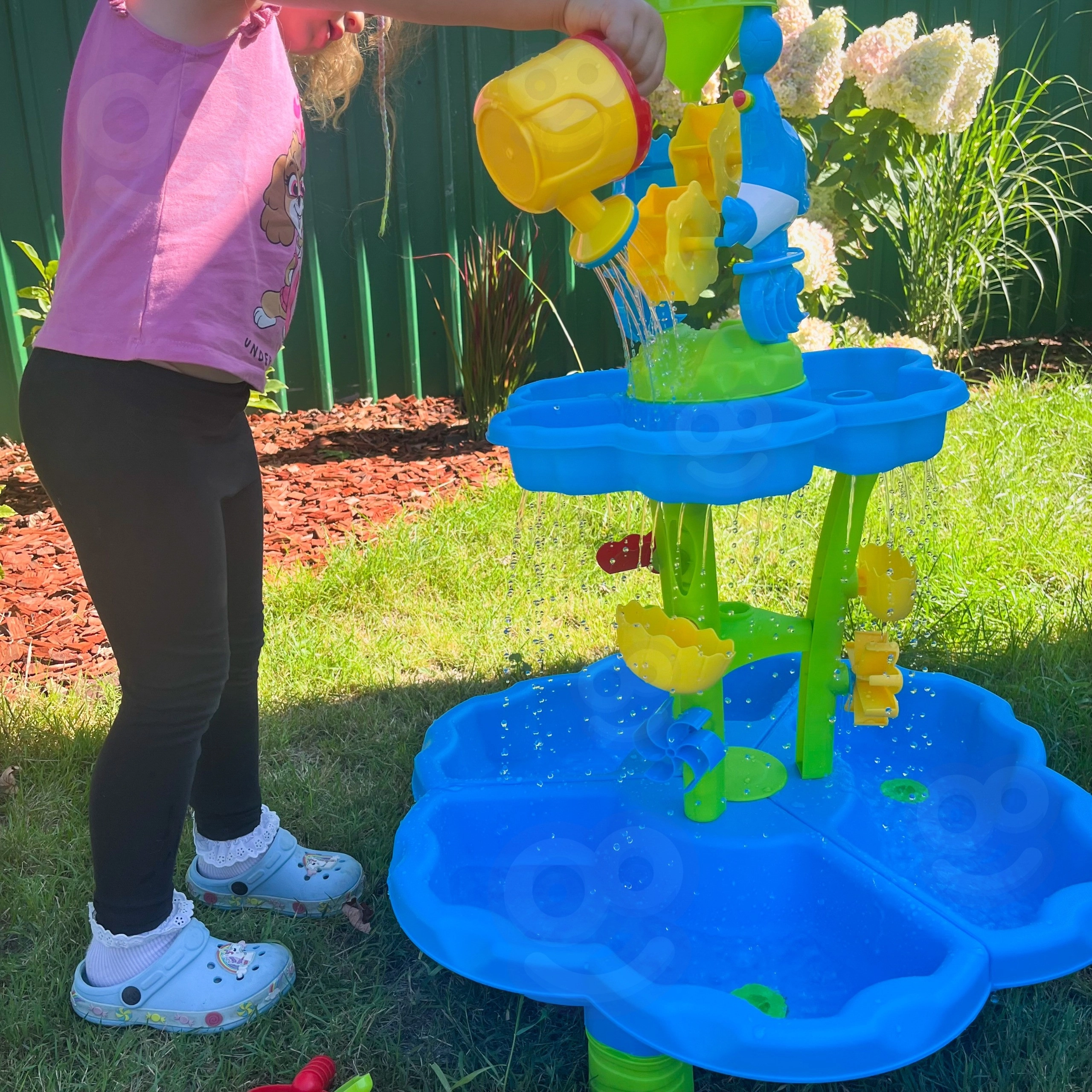Voda teče kroz više razina, pokreće kotače i stvara mini slapove koji fasciniraju djecu i uče ih uzročno-posljedičnim odnosima.
