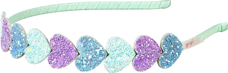 StilskA traka za male djevojčice, ukrašena sjajnim srcima u plavim nijansama. Idealan dodatak za svakodnevne frizure i svečane prilike.
