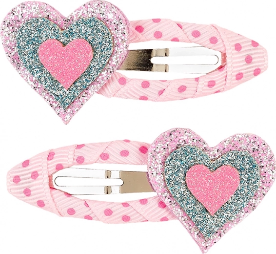 Preslatki set od dvije ukosnice za kosu, ukrašen motivom srca, donosi čaroliju u svaku dječju frizuru. Metalni dio ukosnica pažljivo je omotan ryps trakom, što osigurava eleganciju i sigurnost pri nošenju.